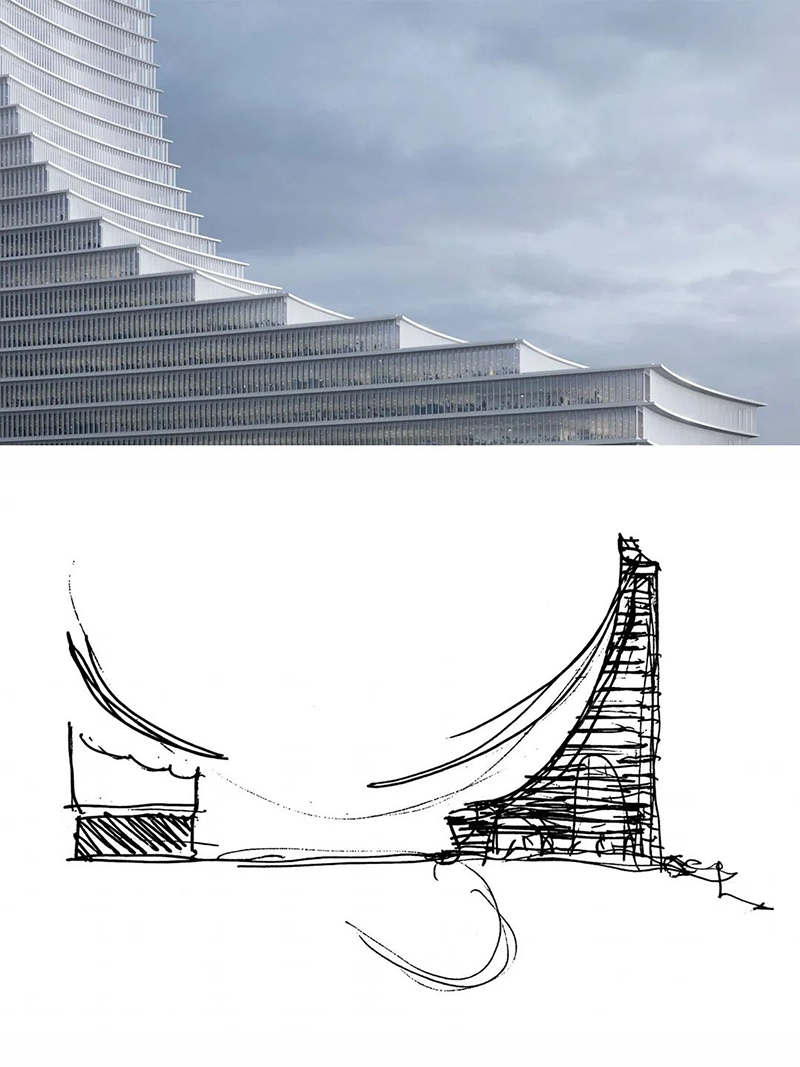 其錐形玻璃幕墻采用由 Other Spaces 工作室設計的遮陽面板和動態照明系統,將在天際線上形成一道引人注目的風景。