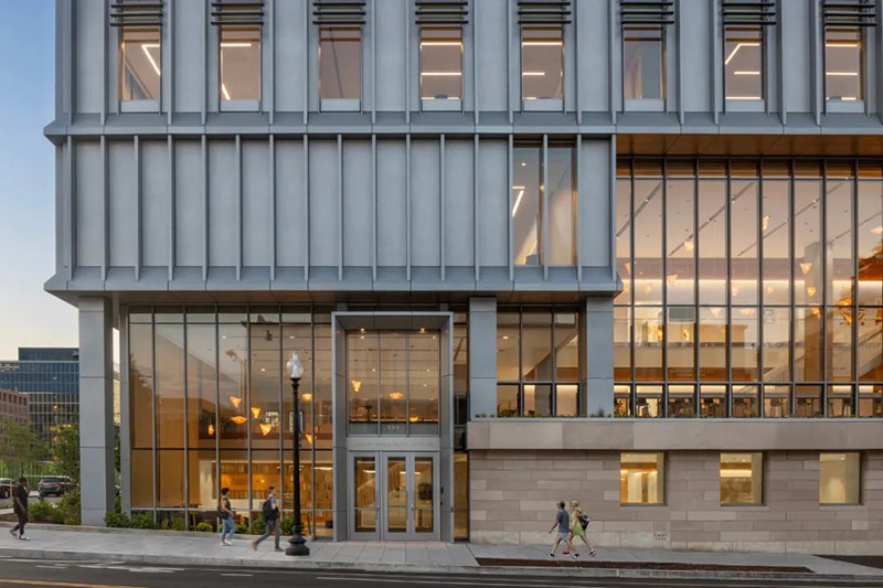 羅伯特-A-M-斯特恩建筑設計事務所(RAMSA)為位于華盛頓市中心喬治敦大學國會大廈校區的麥考特公共政策學院設計了一座新的旗艦建筑。這座新建筑占地 150,000 平方英尺,位于西北部 125 E 街,是學生、教師、研究人員以及活躍在美國首都的廣大決策社區的學術中心。大樓內有大量的教育和社區空間,包括 20 間教室、一個寬敞的主公共空間、學術辦公室、一個可容納 400 人的禮堂,以及一個可俯瞰美國國會大廈全景的大型屋頂露臺和一個可容納 280 人的會場。作為一個致力于應對復雜的國家和國際挑戰的學術中心,麥考特公共政策學院將可持續發展和能源效率放在首位,其設計目標是獲得 LEED 白金級認證。此外,由建筑師、設計師、藝術家和雕塑家瑪雅-林(Maya Lin)設計的一系列針對特定場所的原創裝置,鼓勵建筑使用者考慮周圍的自然環境。作為國會大廈校區的旗艦建筑,麥考特學校是喬治城市中心文脈和連貫性的延伸。125 E St.是一座由石材、鑲板金屬和玻璃幕墻組成的立方體建筑,其外形和規模與周邊建筑一脈相承。垂直鰭片和磚砌底板--主要用于遮擋陽光并優化熱性能--用凸出的線條勾勒出建筑的立面,與鄰近的西北第一街 500 號的統一沖孔窗戶遙相呼應。然而,麥考特學院的 125 E St. 建筑則通過金屬、石材和玻璃的交錯使用,引入了新的視覺趣味。麥考特公共政策學院的內部建筑是由其獨特的地理位置所提供的教育機會所決定的,即靠近美國國會大廈和最高法院等國家主要決策機構。可容納 400 人的禮堂具有廣播功能,屋頂場地可容納 280 人,可接待主要的政策制定者和從業人員,進行與國家和國際政策制定相關的重要討論。大樓的設計提倡有機互動和偶遇,以促進形成一個強大、互聯和包容的學術社區。瑪雅-林工作室(Maya Lin Studio)的一系列裝置作品名為 “映射我們在世界上的位置”(Mapping Our Place in the World),為室內空間增添了活力,使居住者置身其中,促使他們思考自己與更廣闊世界的聯系。“波托馬克河沿岸 "是一個安裝在天花板上的玻璃大理石作品,仿佛鳥瞰波托馬克河流域。在主公共區,一系列名為 “是否有鳥 ”的天氣響應吊燈會根據陽光、云朵、雪或雨的存在而改變顏色。當地水道、濕地、森林和草地在一天和一年中不同時間的錄音,通過主樓梯上方的定向揚聲器播放。林還參與了建筑屋頂景觀的設計。“空中花園 "是一個帶有橢圓形水池和本地植物的室外露臺。它為人們提供了安靜交談和休憩的機會,同時還弘揚了地區生態,并將美國國會大廈的美景盡收眼底。
