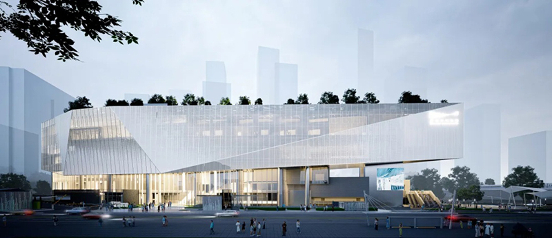 該項目位于深圳龍華區(qū),這座占地面積達(dá)31367平方米、建筑面積達(dá)83290平方米的文化地標(biāo),地上七層,地下兩層,建筑高度39.9米。整座建筑采用框架剪力墻結(jié)構(gòu)體系,巧妙結(jié)合了8核心筒、巨型桁架、鋼管混凝土結(jié)構(gòu)和型鋼混凝土結(jié)構(gòu),總用鋼量約1.12萬噸。
