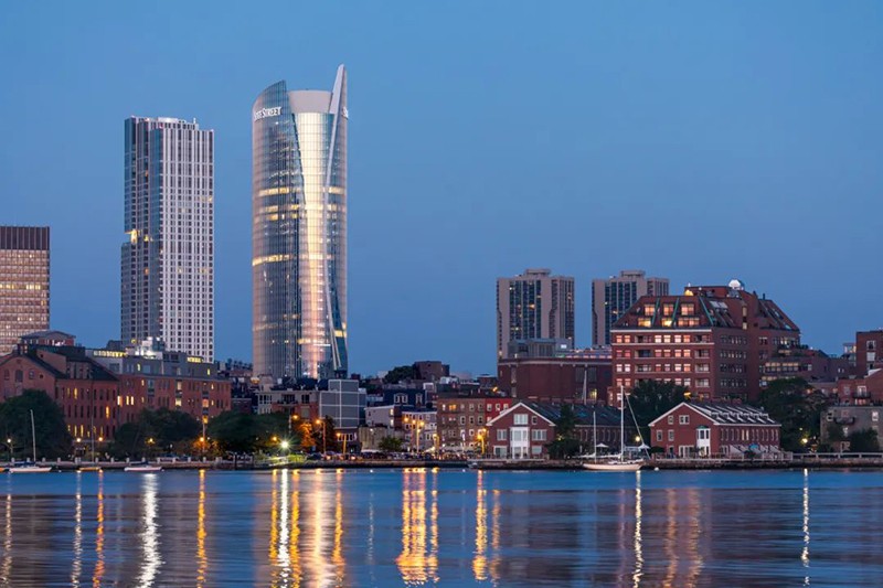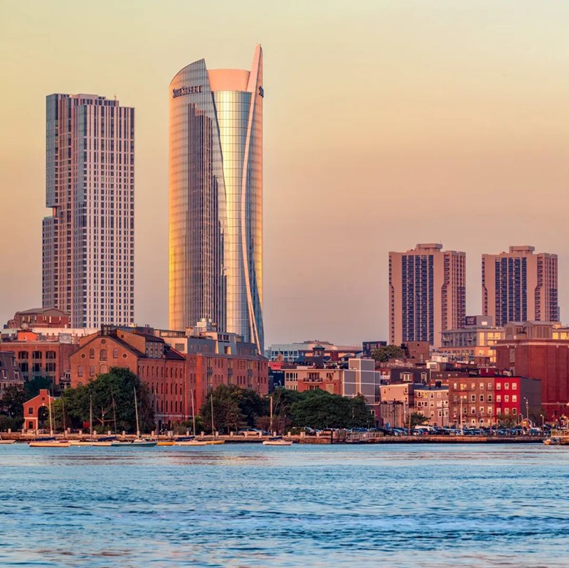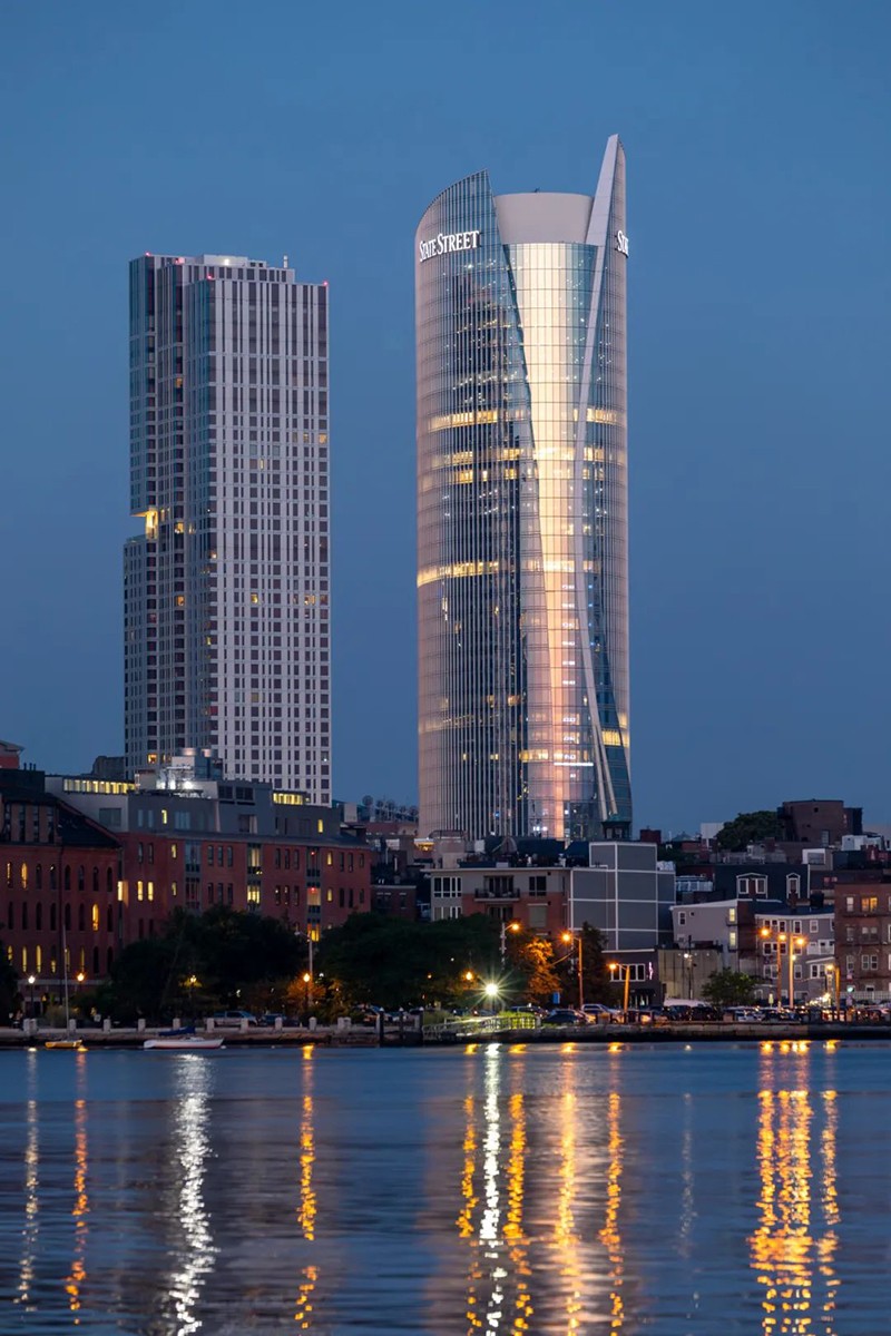 大廈高43層,其獨(dú)特的船帆造型向上逐級(jí)收攏,展現(xiàn)了現(xiàn)代建筑的簡(jiǎn)約美學(xué),且呼應(yīng)了波士頓作為歷史港口的航海基因。
