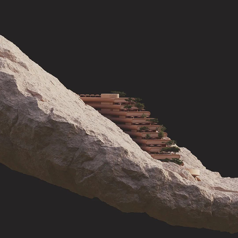 一座向上攀升的建筑。彎曲的樓板與山勢相呼應。并非為了引人注目,而是為了靜靜地融入其中。