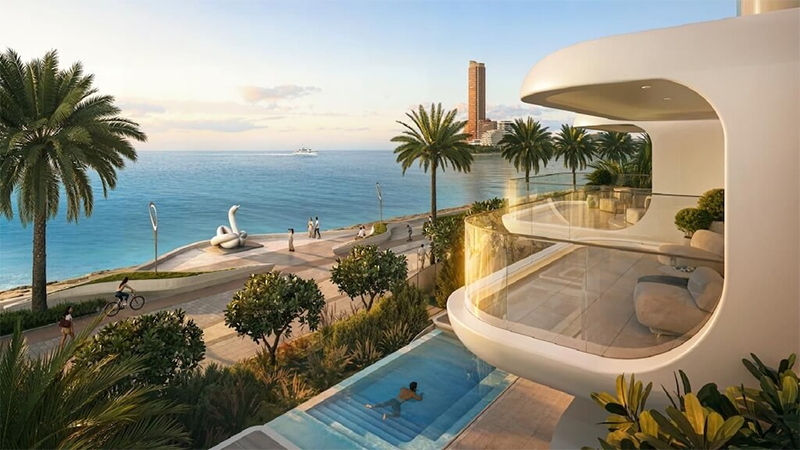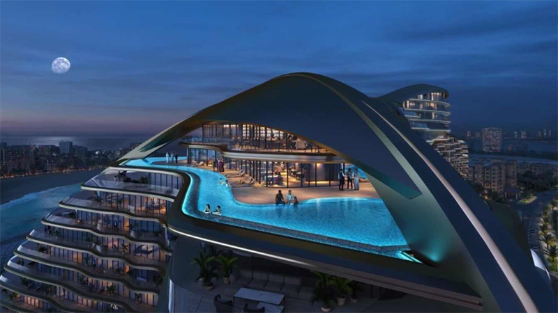 住宅部分包含950套精致住宅,涵蓋一至四居室公寓、復(fù)式公寓、頂層公寓及濱海別墅,其中75%以上戶型享有無(wú)遮擋的壯闊海景。住宅塔樓所處的42,000平方米基地內(nèi),規(guī)劃有園景花園、庭院、泳池、屋頂無(wú)邊泳池、360°觀景餐廳及配套的海灘俱樂(lè)部,為住戶提供一站式高端濱海生活體驗(yàn)。