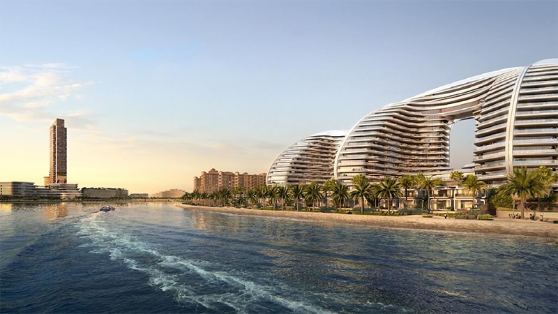 項(xiàng)目位于阿聯(lián)酋拉斯海瑪?shù)?Al Marjan 島,項(xiàng)目占地達(dá)128,000平方米,以一座20層雕塑感住宅塔樓為核心,沿阿拉伯海金色海岸線延展,將建筑美學(xué)與高端濱海生活完美融合。