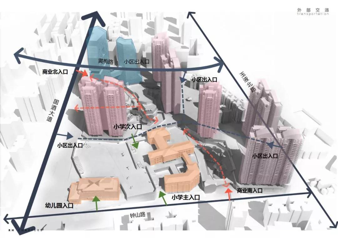 三節(jié)點(diǎn):兩個(gè)主要入口及中心立體節(jié)點(diǎn)”